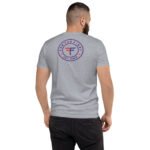 This shirt sports our classic FTF logo as the breast patch on the front, and our classic introductory logo on the back. Both in our Patriot Line colors.